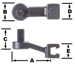 | Part No. | Model | Size (in.) | Max. Torque (in.lbs.) | A (in.) | B (in.) | C (in.) | D (in.) | E (in.) |