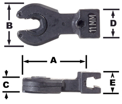 | Part No. | Model | Size (mm) | Max. Torque (in.lbs.) | A (in.) | B (in.) | C (in.) | D (in.) | E (in.) |