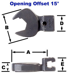 | Part No. | Model | Size (mm) | Max. Torque (in.lbs.) | A (in.) | B (in.) | C (in.) | D (in.) | E (in.) |