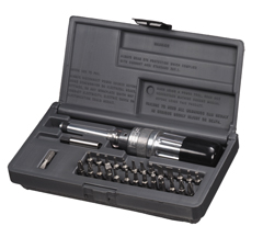 | Contains one CAL 36/4 Adjustable Torque Screwdriver (above), Custom Carrying/Storage Case, and one each of the bits listed here. | ||||